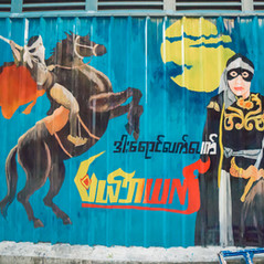 နောက်ဖေးလမ်းကြားတွေကို အလှဆင်နေတဲ့ YGN Walls အဖွဲ့သားတွေရဲ့ တက်တက်ကြွကြွ အနုပညာပုံဖော်နေတာတွေကို မြင်ရတာ အတော်လေးစားစရာပါ။ လမ်းက တာဝန်ရှိလူကြီးတွေကလည်း ဝိုင်းဝန်းပံ့ပိုးနေကြတာ သိပ်ချစ်စရာကောင်းပါတယ်။ ကျွန်တော် ရောက်တဲ့နေ့က အပြည့်အစုံ မပြီးမြောက်သေးပါဘူး။ နိုဝင်ဘာလ (၁၇) ရက်နေ့ဆိုရင်တော့ သေချာ ပြည့်စုံပြီမို့ အားရပါးရ ဓါတ်ပုံရိုက်နိုင်ပြီပေါ့။ ခုတော့ အများကြီး လုပ်နေကြတုန်းပဲ။